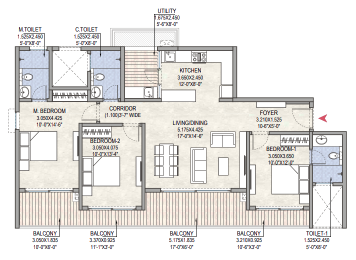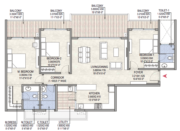 | 3 BHK + 3 T | 2,180 sq. ft. – 2,300 sq. ft. | On Request |